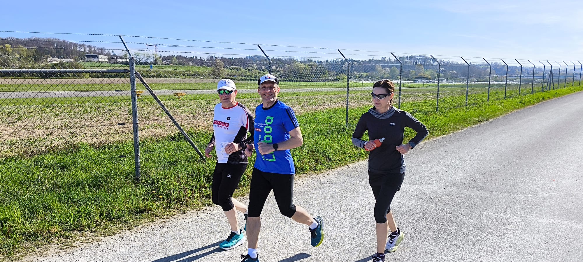 Dieses Mal diente der Parkplatz der Kunsteisbahn Dübendorf als Startbasis für das samstägliche Läufli. Ein kleines, aber feines Grüppchen - klein vermutlich deshalb, weil alle anderen Runners am Zürich Marathon vom Sonntag teilnahmen ;-) - machte sich punkt 09:00 Uhr morgens auf den Weg auf eine abwechslungsreiche Runde rund um den Flugplatz Dübendorf.