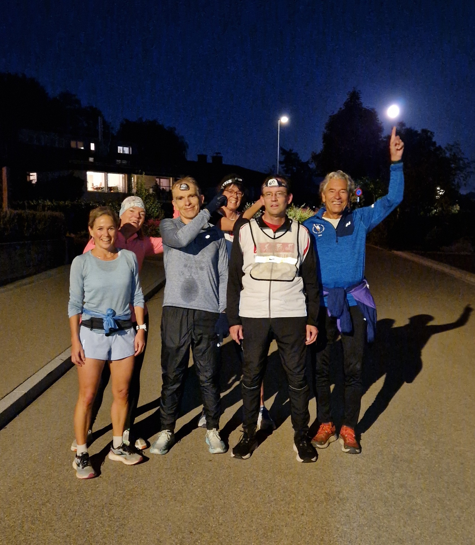Das Läufchen genossen- und den Vollmond bewundert haben: Chantal, Katrin, Sofie, Arnaud, Carlo, Sergio und Rolf.