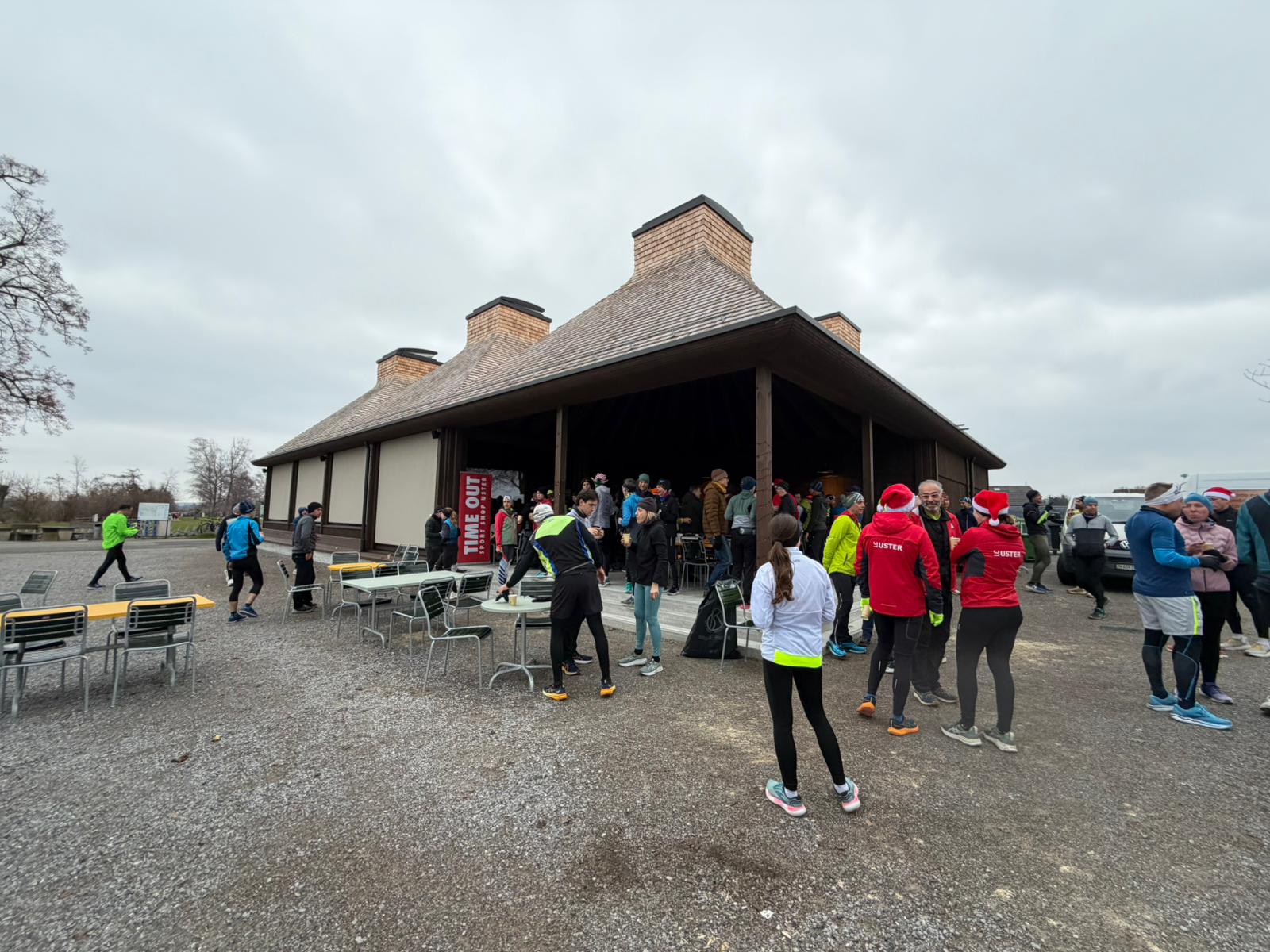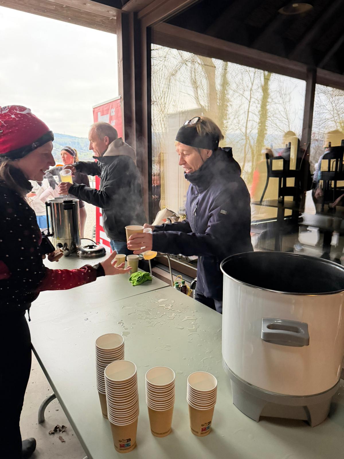 Im Ziel in Uster gab’s dann aber wie üblich strahlende Gesichter und die warmen Getränke und Brötli vom Sport Shop Time Out Uster sowie der Bäckerei Vuaillat waren willkommene Kraftspender. Hier konnte auch der gelungene Bau des neuen Restaurants "im Schilf" bewundert werden und da dieser zwei grössere überdachte Flächen aufweist, wurde die Windgeschütztere von beiden gleich für die Bewirtung genutzt, was sich perfekt bewährte.