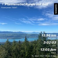 Heute lockte der Berg mit der Runde 11, einer nahrhaften Strecke vom Bahnhof Esslingen auf Pfannenstiel Hochwacht, dann runter bis nach Uetikon am See und via Gibisnüd wieder zurück nach Esslingen. Total 13km bei gut 550Hm.