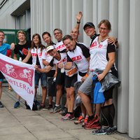 "Sechs Unerschrockene Freizeitsportler trafen sich bei launigem Wetter auf dem Parkplatz Schifflände in Maur.